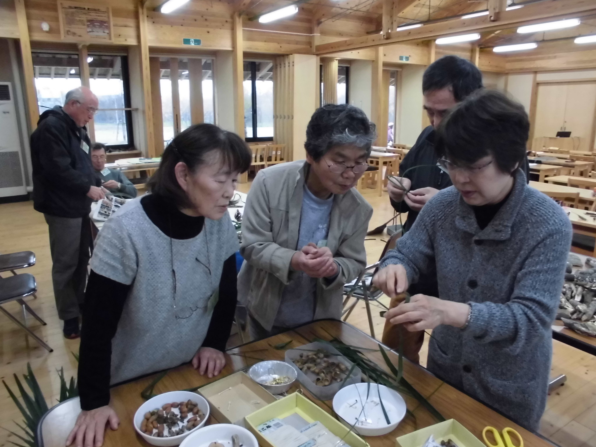 第2部では、林講師の指導により、ドングリや木の枝などを用いたクラフトとシュロを使ったバッタづくりに挑戦しました。クラフトでは皆さん思い思いの作品に力が籠もり、またシュロバッタでは悪戦苦闘のすえ時間を忘れるほど熱心に取り組んでいました。