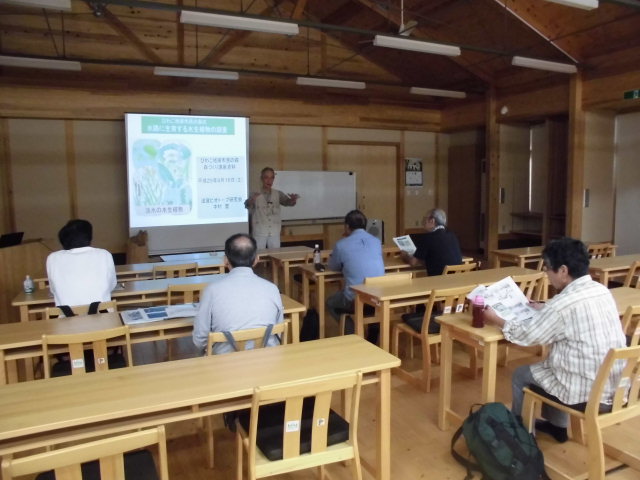 第2部では、中村實講師より、「水路に生育する水生植物」について、当森での水路やワンドで見られる植生分布、水辺環境の変化、環境による植物への影響などを学び、水生植物の現状を知りました。