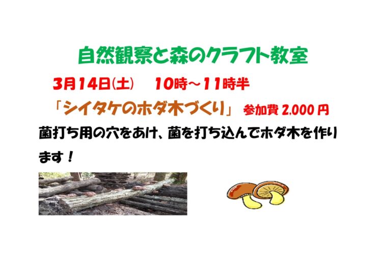 3月の自然観察と森のクラフト教室のご案内