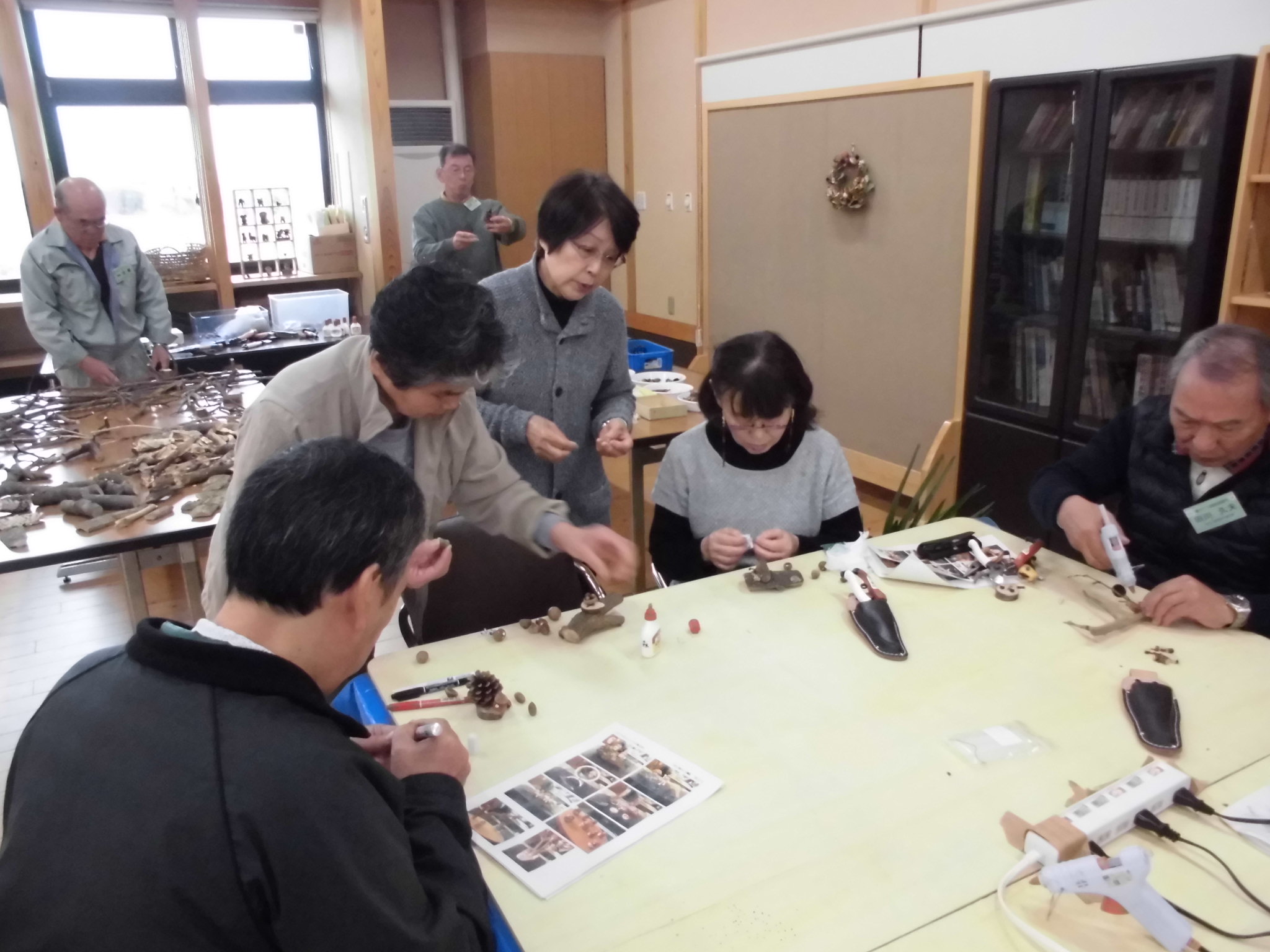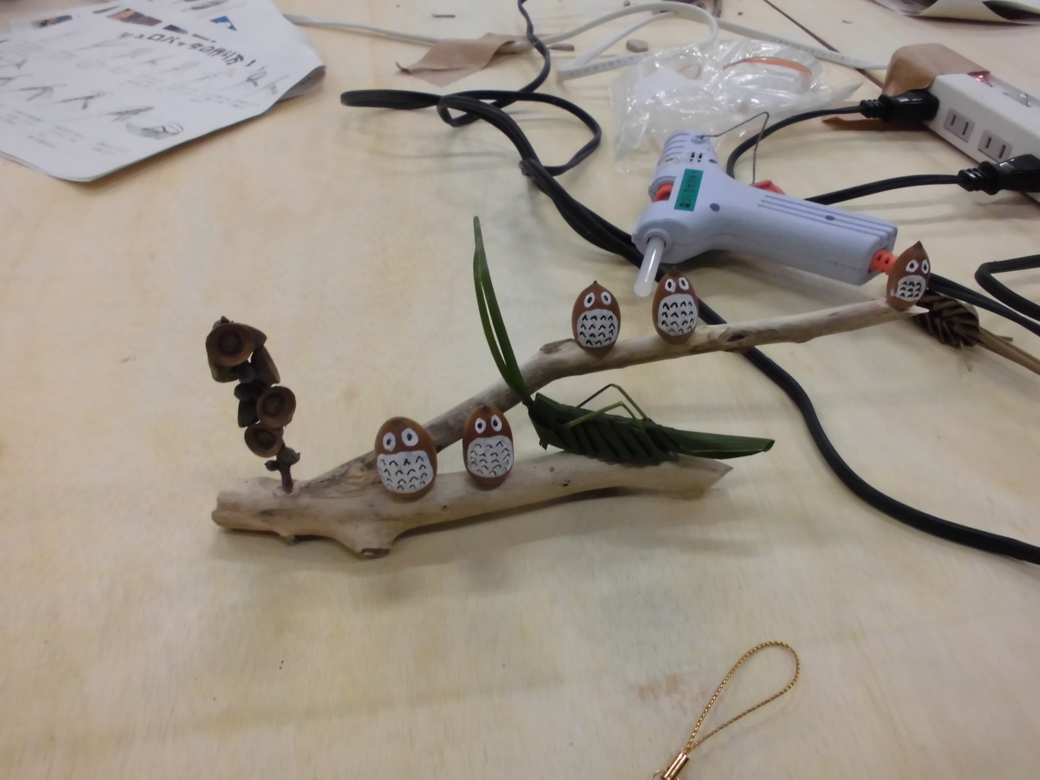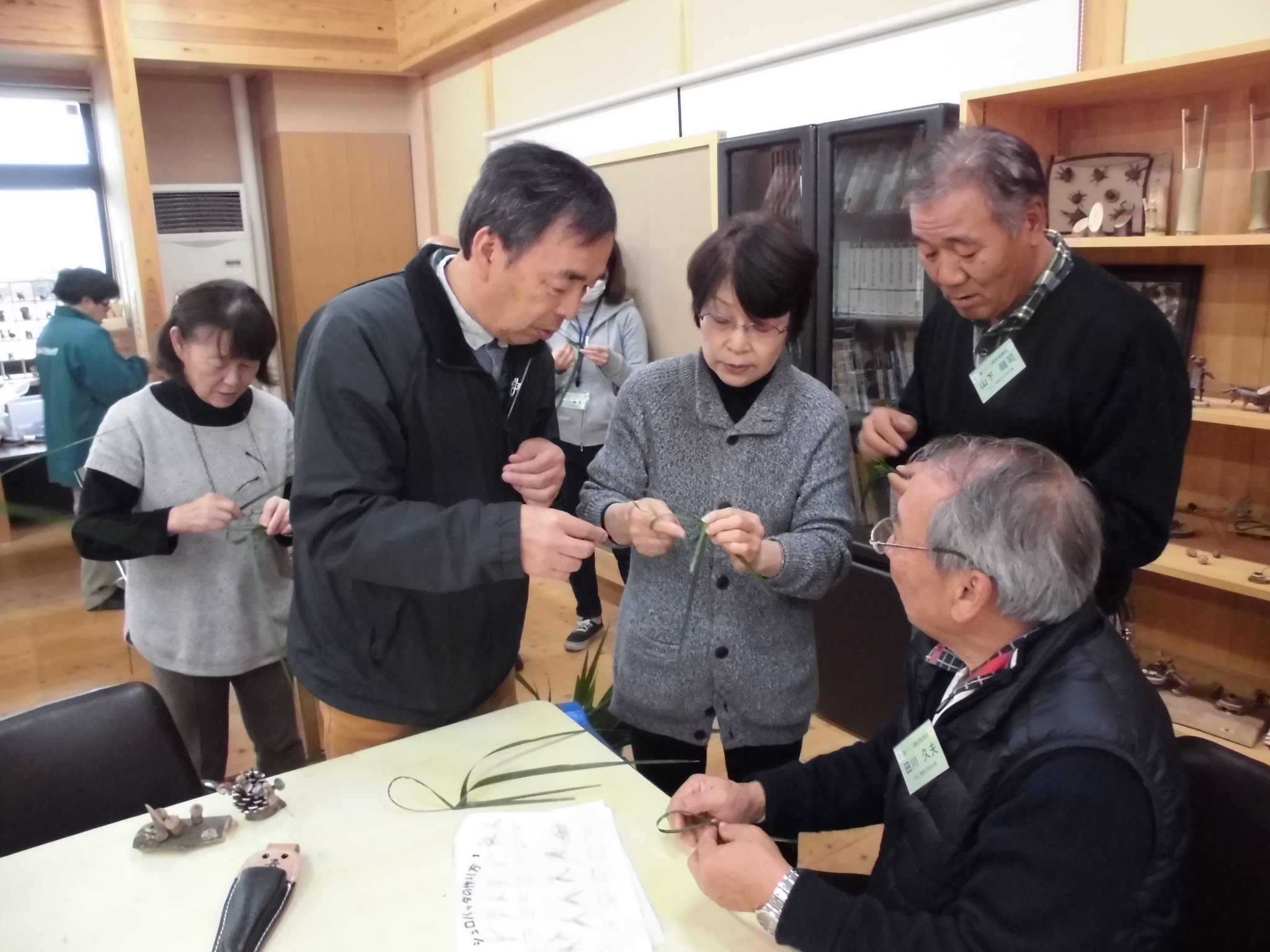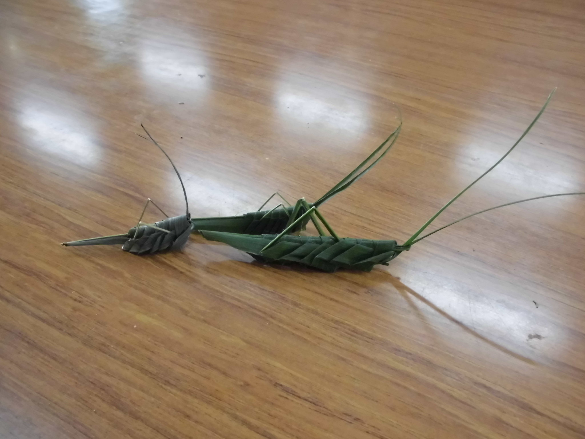 第2部では、林講師の指導により、ドングリや木の枝などを用いたクラフトとシュロを使ったバッタづくりに挑戦しました。クラフトでは皆さん思い思いの作品に力が籠もり、またシュロバッタでは悪戦苦闘のすえ時間を忘れるほど熱心に取り組んでいました。