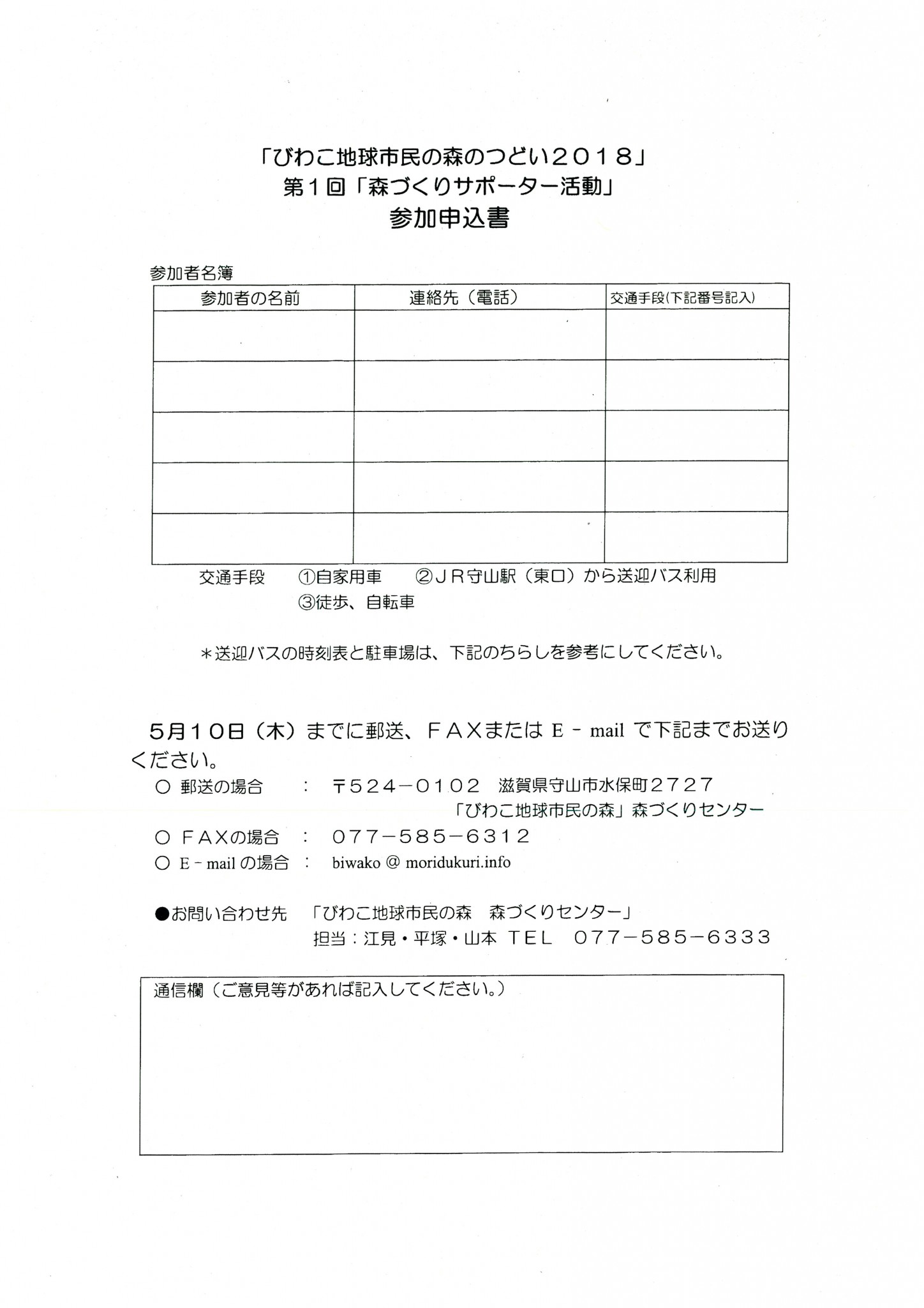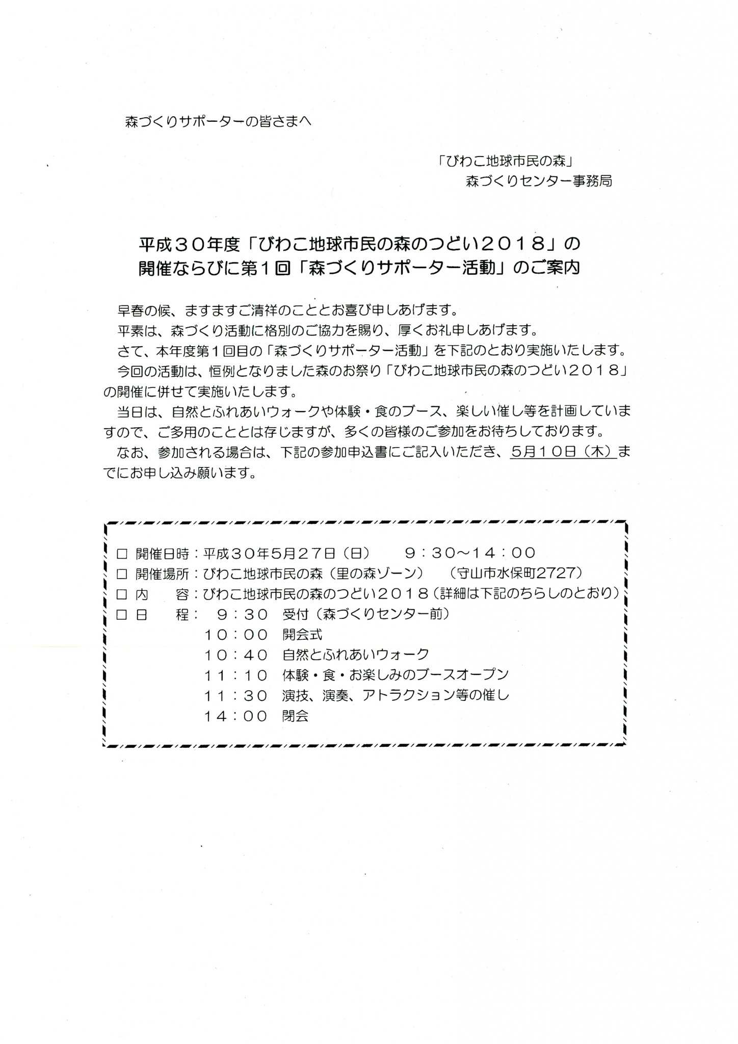 平成30年度「びわこ地球市民の森のつどい2018」のご案内
