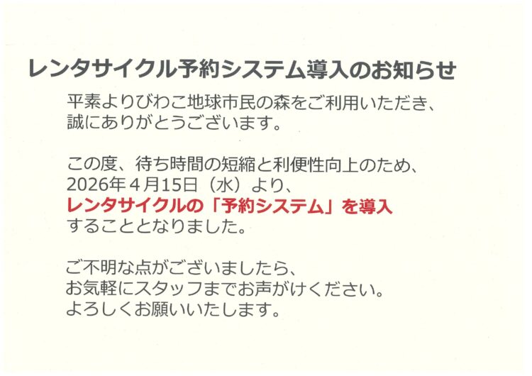🚲4月15日(水)よりレンタサイクルの予約方法が変わります🚲