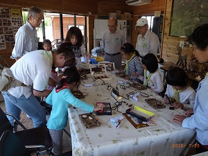 ドングリやサクラの間伐材を使ってリースやプレートを作りました。 かわいい作品が完成しました!