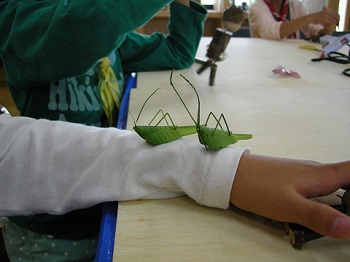 サポーターの方にもお手伝いいただき、この日に合わせて手作りの「シュロ・バッタを子ども達のお土産に」と全員いただきました! とっても精巧なつくりに皆大感激!